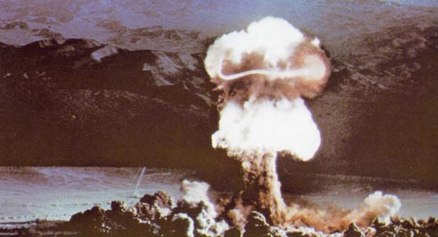 La aniquilación completa de una ciudad con energía atómica goza de una impopularidad evidente, por lo que es mejor exhibir el potencial destructor como posible respuesta a un invasor del espacio. En el mundo occidental, esta conciencia adquiere las veces de una paradoja insufrible, pues muchos tienden a decir que lo que hicieron los americanos en Hiroshima fue imperdonable (tan imperdonable como lo que hicieron los japoneses en los campos de concentración de China, o los alemanes en los suyos), una aberración contra la Humanidad (¿qué humanidad, la asiática, la nipona?), y sin embargo, recogiendo las cifras de muertos y la destrucción en Dresde, pocos censuran el infernal bombardeo aliado sobre los alemanes; como si, en efecto, fuese mejor ir matando a cien mil personas de una en una, que hacerlo a todas a la vez. Lo que aterraba, y aterra de Hiroshima, fue que la tecnología militar fuese capaz de destruir tanto en tan poco tiempo. Al menos, pensaban algunos, el asesinato es parcialmente limitado, y las victimas no sobrepasan nunca un número «razonable». Pero el hecho de que hubiese artefactos con poder de destruir ciudades en un segundo convirtió el panorama de las relaciones entre los Estados más potentes en una tensa calma; de hecho, como se ha venido demostrando (y con la excepción de que haya, o pueda haber, alguna organización terrorista que se apodere de esta tecnología para sus fines destructores) el arma nuclear ya no existe entre las Naciones para ser usada en efecto, sino para emplearse como idóneo mecanismo inhibidor. El mejor inhibidor estatal de las mayores potencias es la bomba atómica, de eso no cabe duda, como incluso se refleja en el conflicto entre dos países subdesarrollados como India y Pakistan. Fuera, por tanto, de los esquemas de un empleo real sobre otras potencias (es decir, sobre la convicción de que se construyen bombas de ese tipo no tanto para lanzarlas contra otro Estado como para amenazar con hacerlo, al modo en que China usa sus desfiles militares como pavoneo contra la desobediencia de Taiwan), la energía atómica es usada como propaganda contra el cruel invasor del espacio que viene a someternos como lo hacen unos hombres contra otros. La bomba será incluso una idea imaginativa para la resolución de problemas del espacio «coyunturales», como lo demuestra la película Deep Impact (1998), protagonizada por el inevitable Bruce Willis, y donde un misil perfora la base de un meteorito que viene para estrellarse contra nuestro planeta.