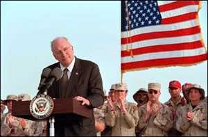 He aquí, pues, la primera razón para la guerra: entre la II y la III Guerra de Irak hay una línea lógica de continuidad. No hubo armisticio ni tratado de paz, sólo un «alto el fuego» a la espera del cumplimiento de los compromisos. Éstos no se cumplieron y George W. Bush ha tenido que completar lo que su padre le dejó en herencia sin solucionar del todo.